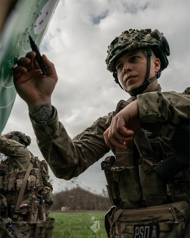 Ausbildung von Soldaten des Kommandos der operativ-taktischen Einheit des 1. Korps „Asow“ der Nationalgarde der Ukraine (NGU).