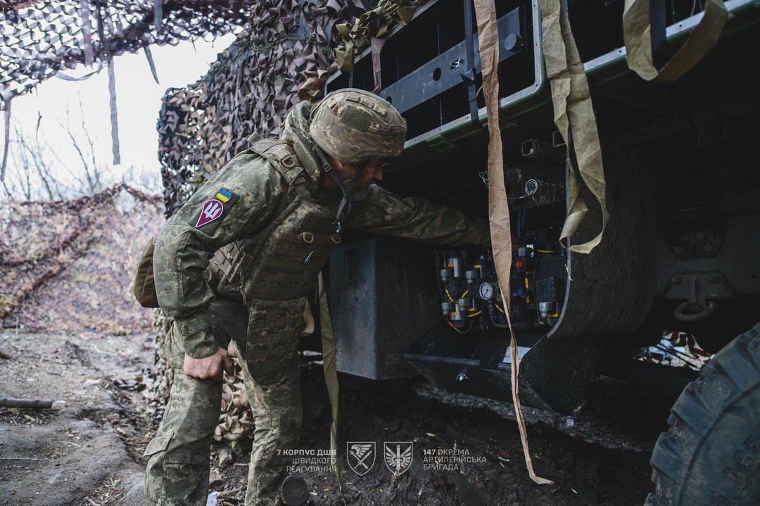 Französische selbstfahrende Haubitze (SPH) „Caesar mk1“ (155 mm) von der 147. Separaten Artilleriebrigade – des 7. Luftangriffskorps – der Luftangriffsstreitkräfte der Ukraine (AAFU).