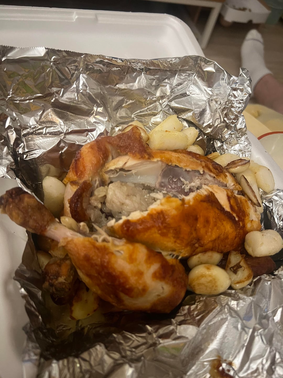 Dies ist ein mit Reis gefülltes Brathähnchen nach koreanischer Art 🍗🍚