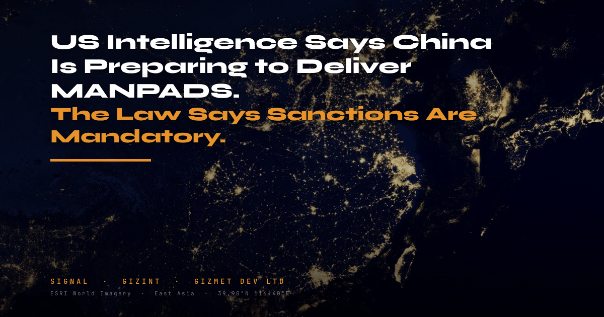 SS: Three US intelligence sources told CNN on 11 April that China is preparing to deliver man-portable air defence systems to Iran via third countries. The Chinese Embassy denied it.