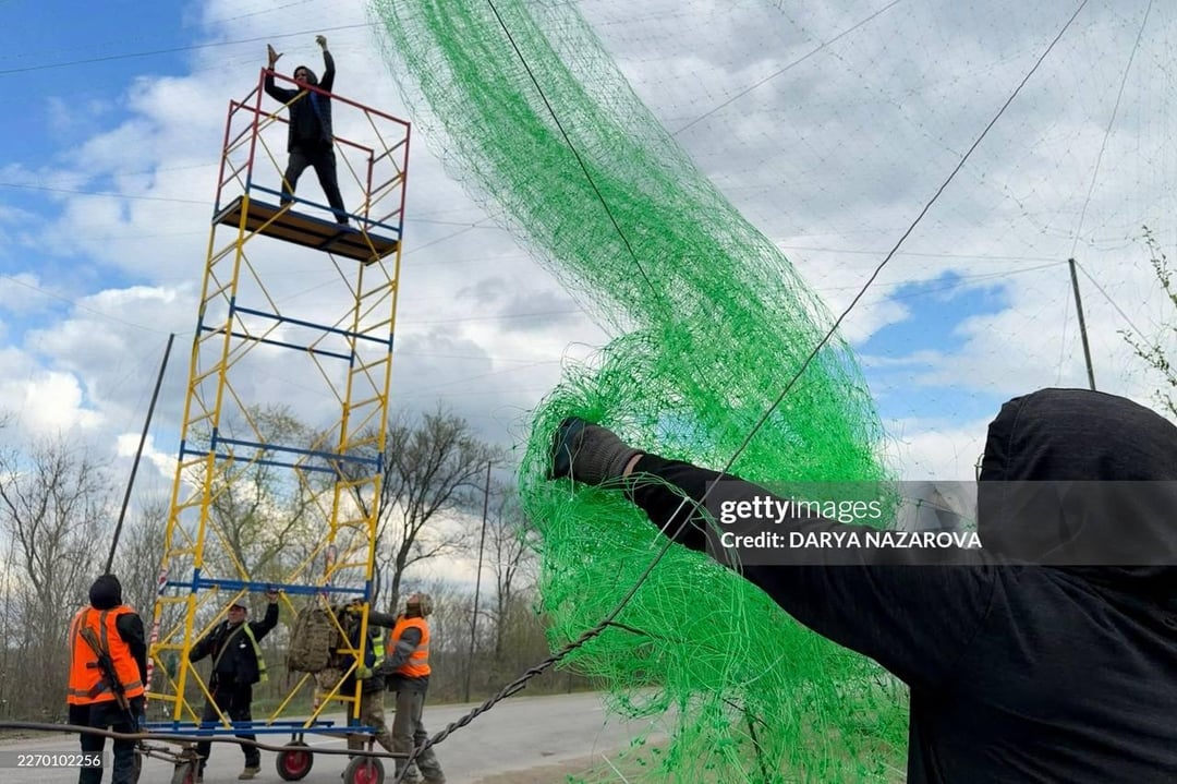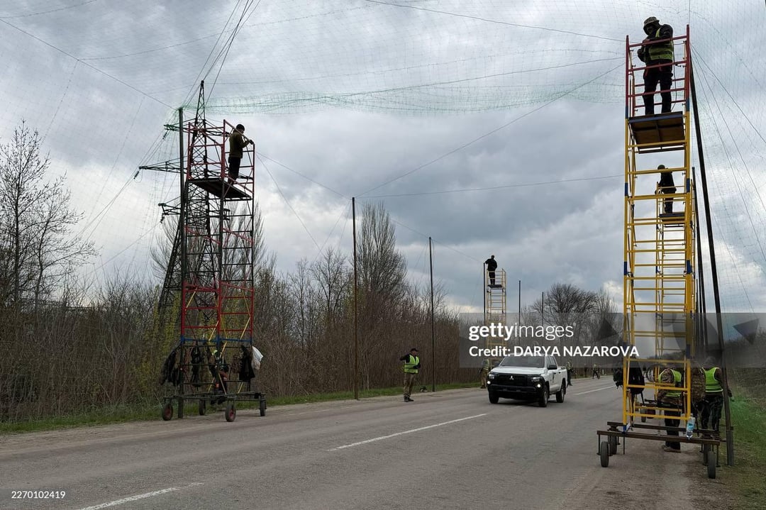 This is extremely dangerous work, often less than 20km from the line. Hopefully Ukraine is developing a more automated vehicle that can quickly put the poles down and a vehicle behind to drag netting over the top.