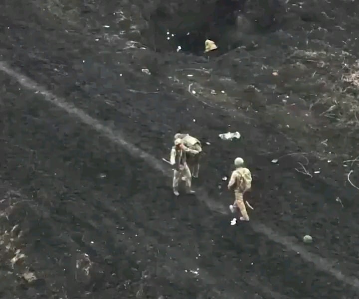 Drei russische Eindringlinge gratulierten einander dafür, dass sie die Schlacht lebend überstanden hatten, und wurden wenige Augenblicke später von einer ukrainischen FPV-Drohne getroffen