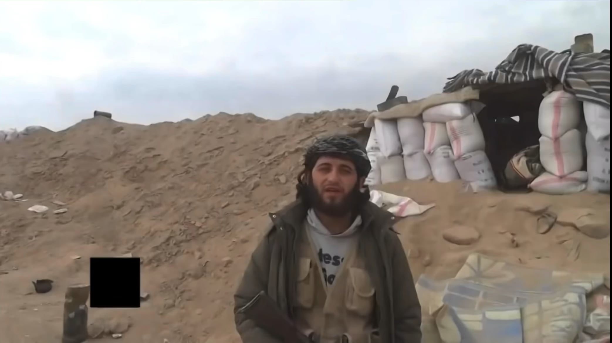 Im Gegensatz zu diesen Bezeichnungen handelt es sich tatsächlich um ein Mitglied von „Ajnad al-Sham“, einer Fraktion im syrischen Bürgerkrieg, die eng mit Al-Qaida verbündet und verbündet war.