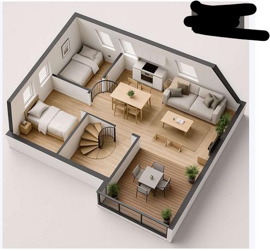 Aber das hier ist echt ein neues Low. Ich mein, ein Makler bekommt viel Geld für seine Tätigkeit. Da kann man seine AI Renderings schon ein bissl manuell nachbessern oder gleich mit gscheiter Software machen. Was is mit dem Geländer mitten in der Küche, die btw ohne Abwasch und Kühlschrank daherkommt? Was sind das für Sessel, die im Boden verschwinden? Wenn du es nicht hinbekommst, dann zeig einfach einen Oldschool Grundriss. Sowas kann ich nicht ernst nehmen.