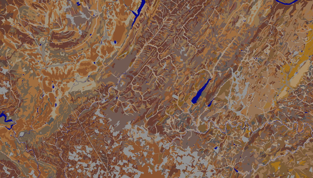 Geodaten von SSURGO Und STATSGO2. Die Farben werden aus Feldbeobachtungen und offiziellen Serienbeschreibungen abgeleitet.