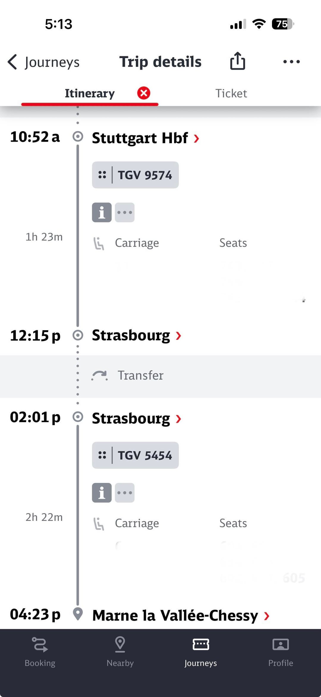 Wir nehmen am 30. April eine Zugverbindung von Garmisch-Partenkirchen, Deutschland, nach Marne la Vallée-Chessy, Frankreich.