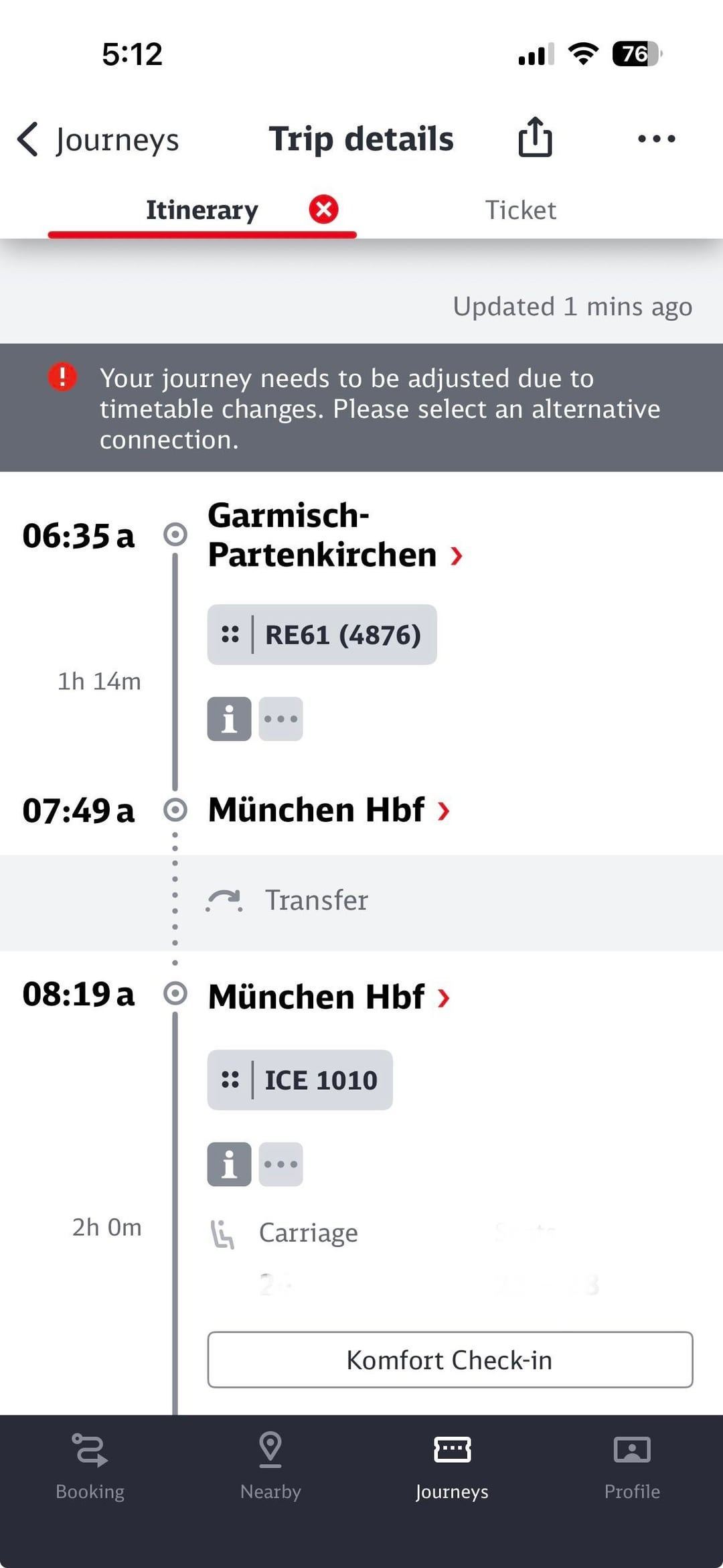 Ich habe die DB-App gebucht und gerade eine Benachrichtigung über eine Fahrplanänderung erhalten und muss eine Verbindung anpassen… außer wenn ich mir die App ansehe, weiß ich nicht, was ich tun soll.