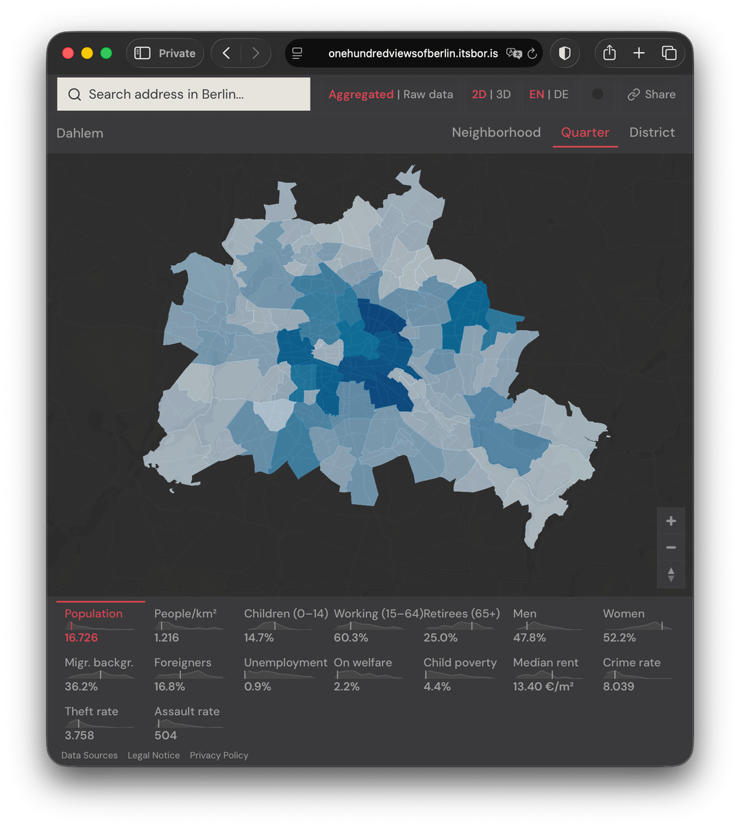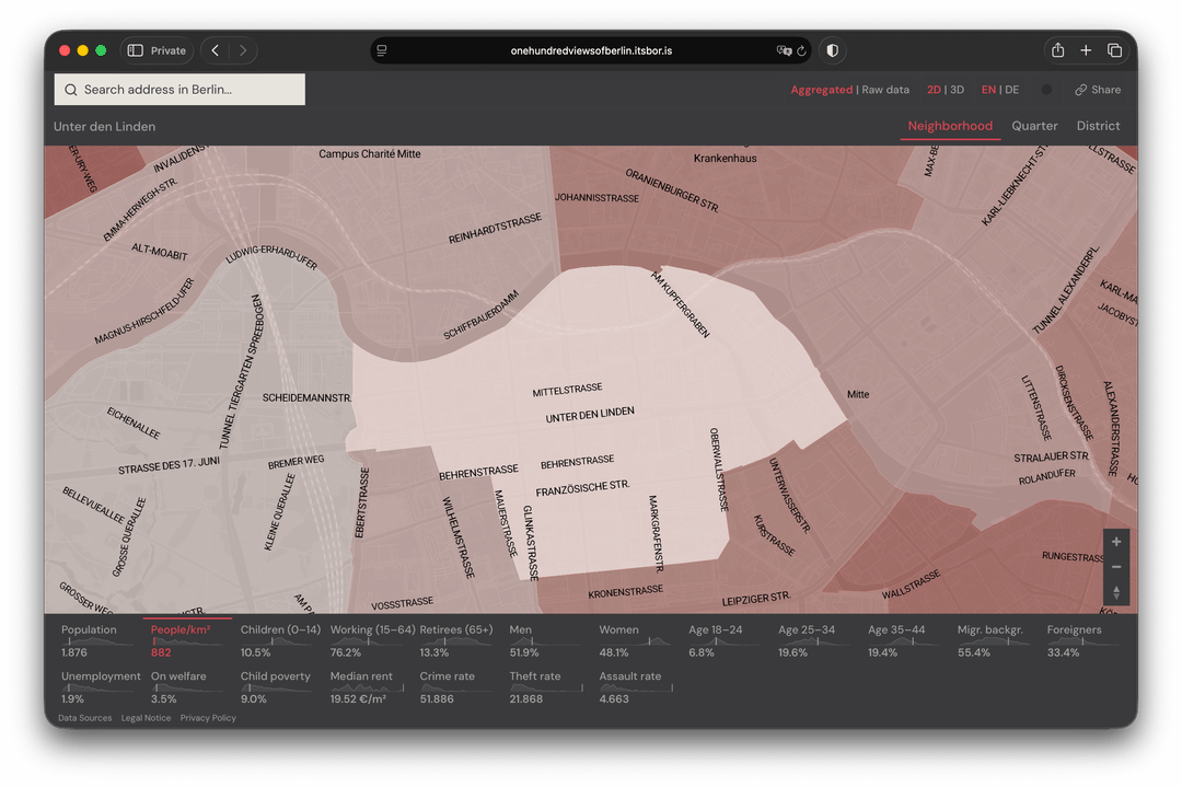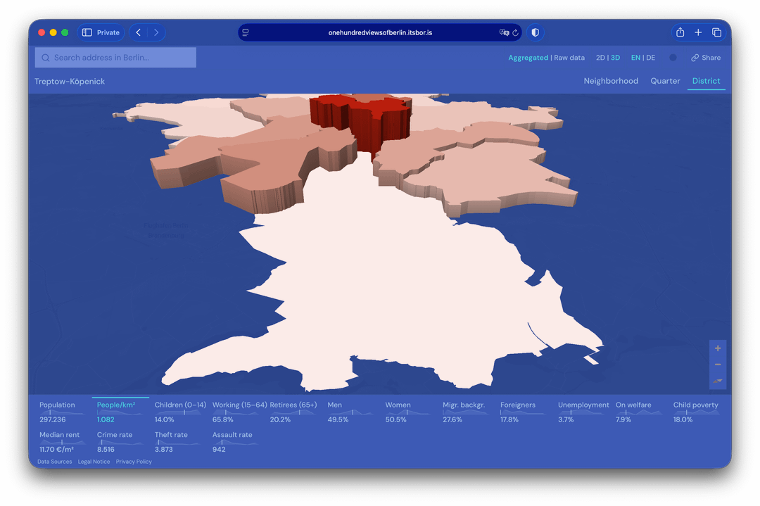 Berlin verfügt tatsächlich über viele öffentlich zugängliche Daten. Das Problem ist, dass es über verschiedene Quellen verstreut ist, manchmal veraltet ist und die offiziellen Visualisierungen aussehen, als wären sie 1995 erstellt worden. Also habe ich meine eigene erstellt.