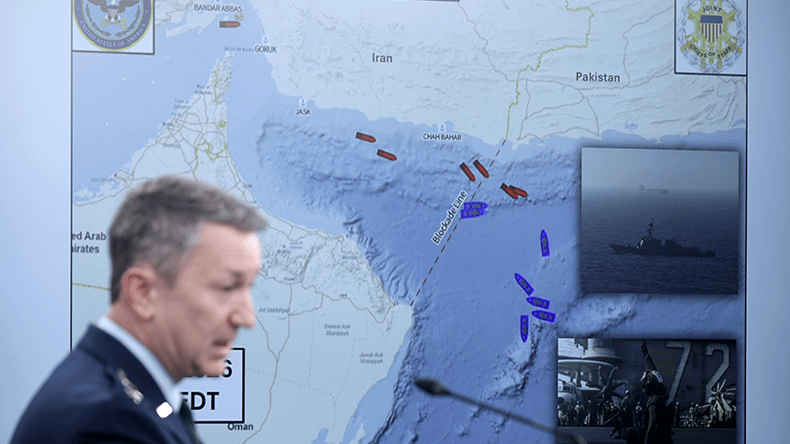 The „blockade line“ spanning the entire strait isn’t doing any favors to their argument that they aren’t blockading the strait, just blockading Iranian ports…
