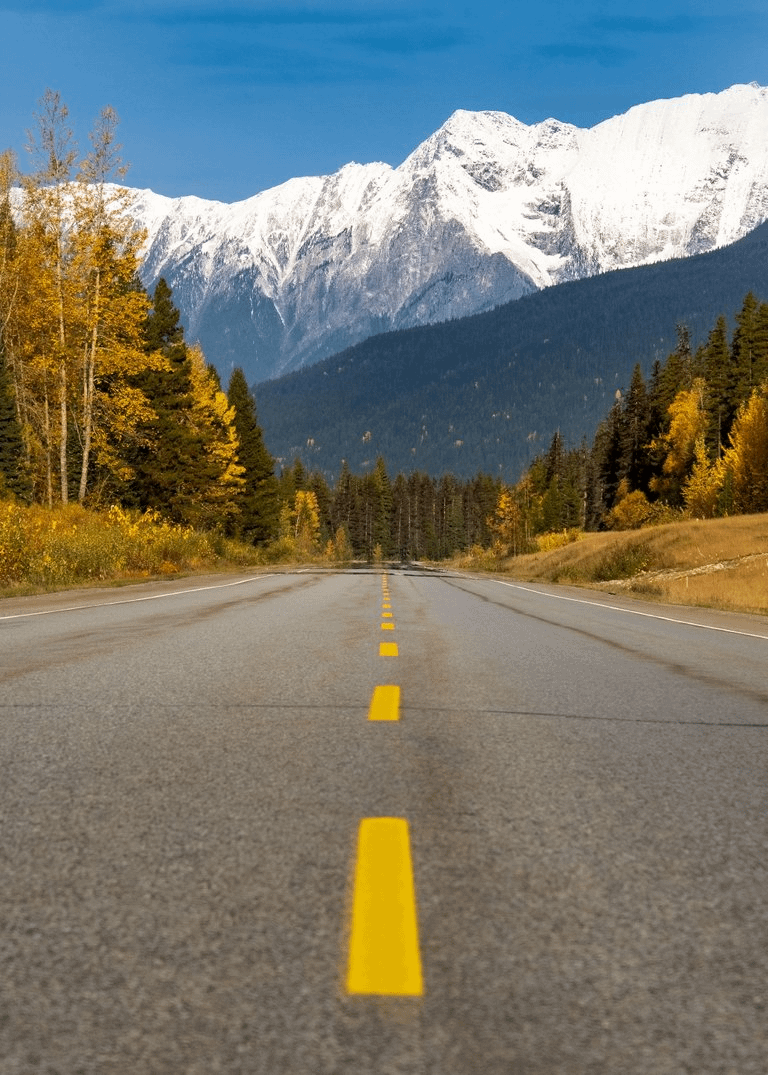 Was für eine herrliche Aussicht. Vergilbte Bäume, in der Ferne ein grüner Wald. Schnee auf den Bergen. Alles auf einem einzigen Foto zu sehen, zeigt die Qualität des Bildes.