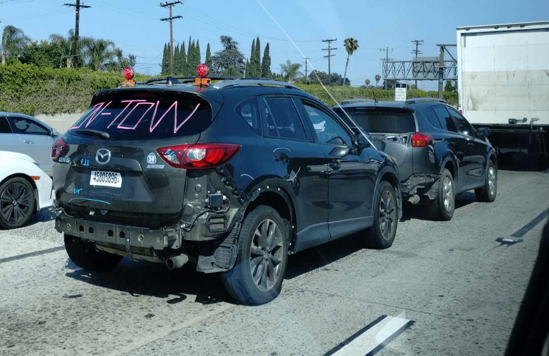 Is this on a weird first in first out parking lot? Because that car in front looks like it’s missing parts too.