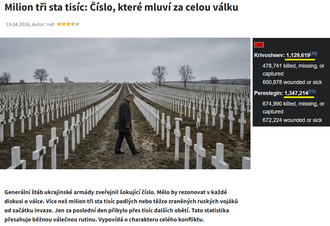 Ukrajina se z toho podle mě už nikdy nevzpomatuje. Během revoluce měla Ukrajina okolo 52 milionů obyvatel. Před začátkou konfliktu v roce 2014 měla okolo 45 milionů. Před invazí v roce 2022 měla okolo 41 milionů. Dnes má pod 30 milionů obyvatel. Ztráty má dle drtivé většiny odhadů o dost nižší než Rusko, přece jen se většinou brání a rusáci postupně dobývají její opevnění. Nicměně vzhledem k její výrazně nižší populaci je to pro ni větší problém.