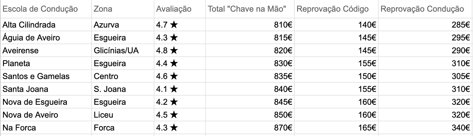 A inflação neste setor é ridícula. Há 10 anos tiravas a carta em Liboa por 200 euros