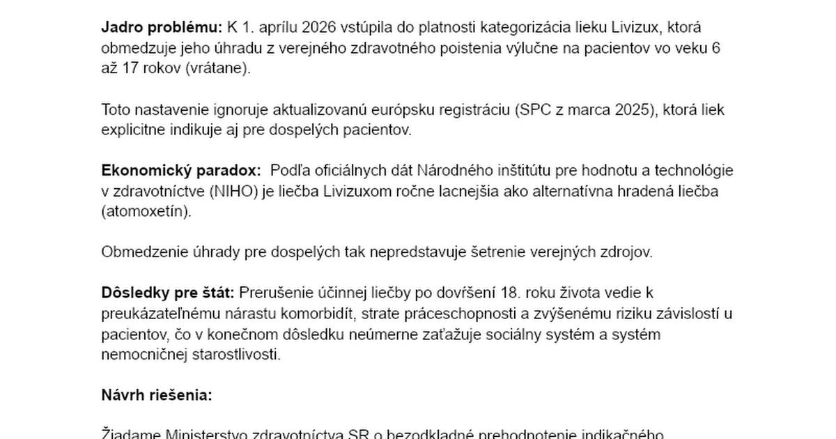 Während Beamte in warmen Büros darüber nachdenken, ob es sich überhaupt lohnt, ihnen zu antworten, müssen Hunderte erwachsene Patienten in der Slowakei ihre Behandlung vollständig aus eigener Tasche bezahlen. Jeder Tag ihres Alibi kostet uns Dutzende Euro.