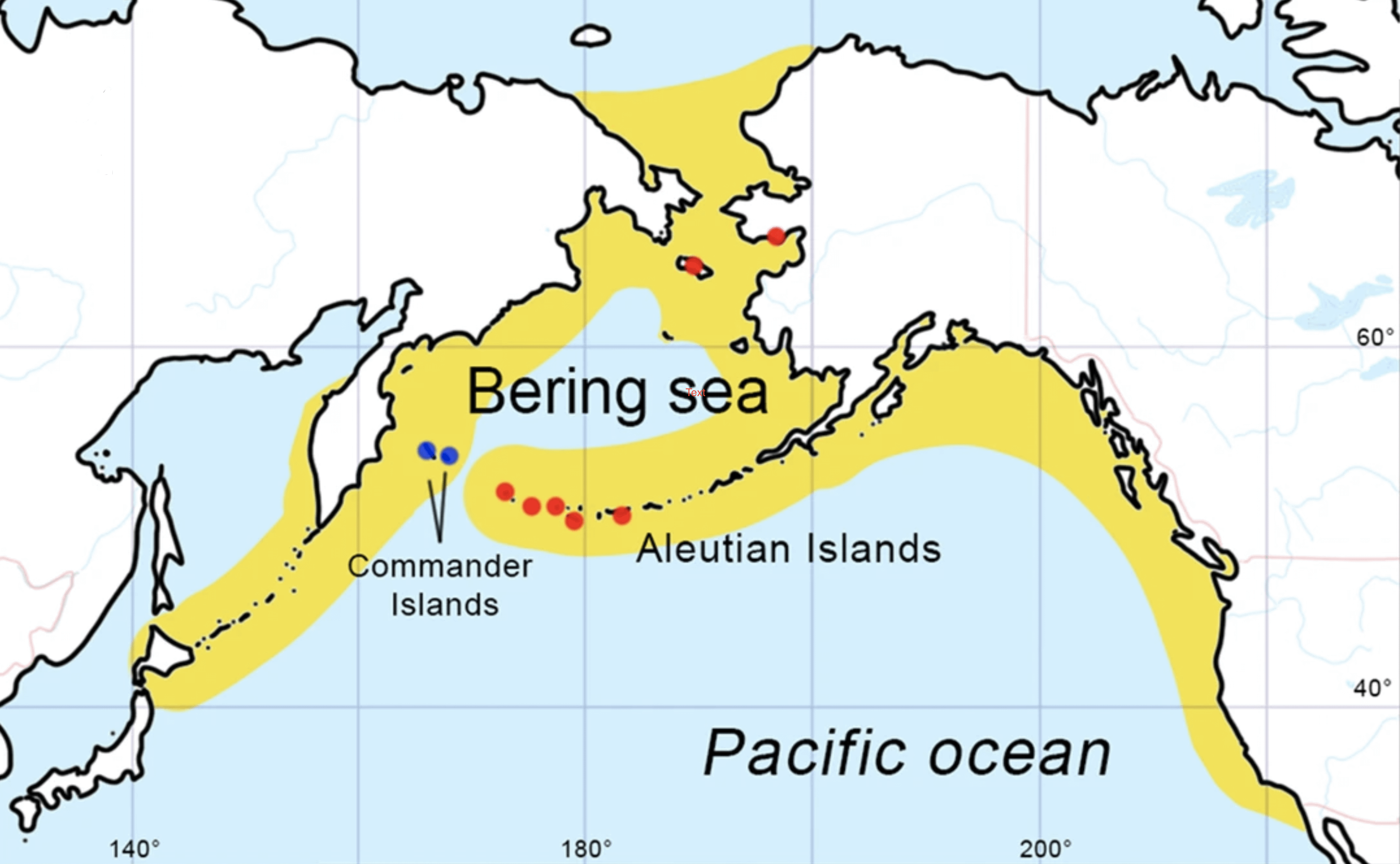 – Gelb markiert die Verbreitung der Seekuh im Pleistozän.