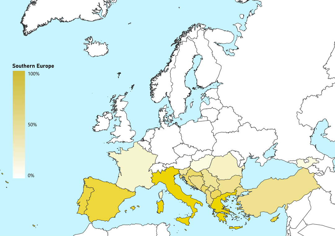 I think Southern Europe is slightly influenced by holiday destination popularity.