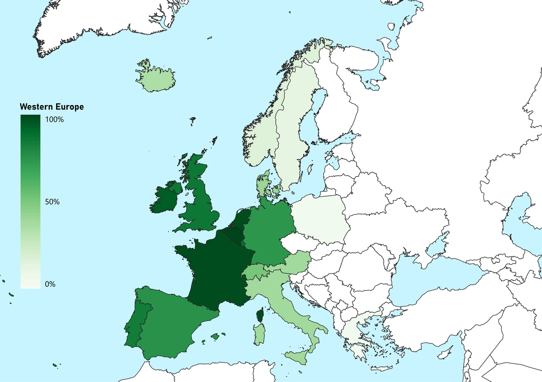 Western Europe doesn’t seem quite so strongly influenced.