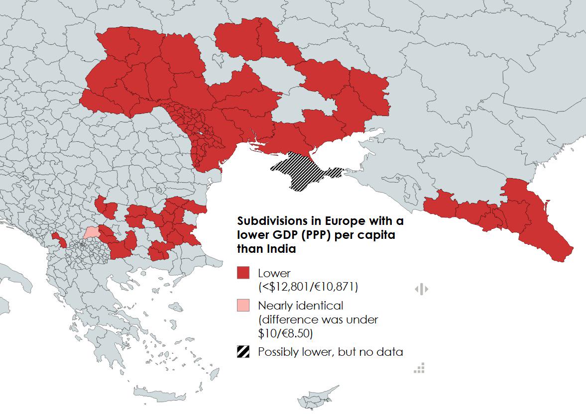 How is it possible that so many regions of Bulgaria are on here, but basically no regions in the Western Balkans, when Bulgaria has a GDP PPP per capita higher than all of them (except Croatia)?