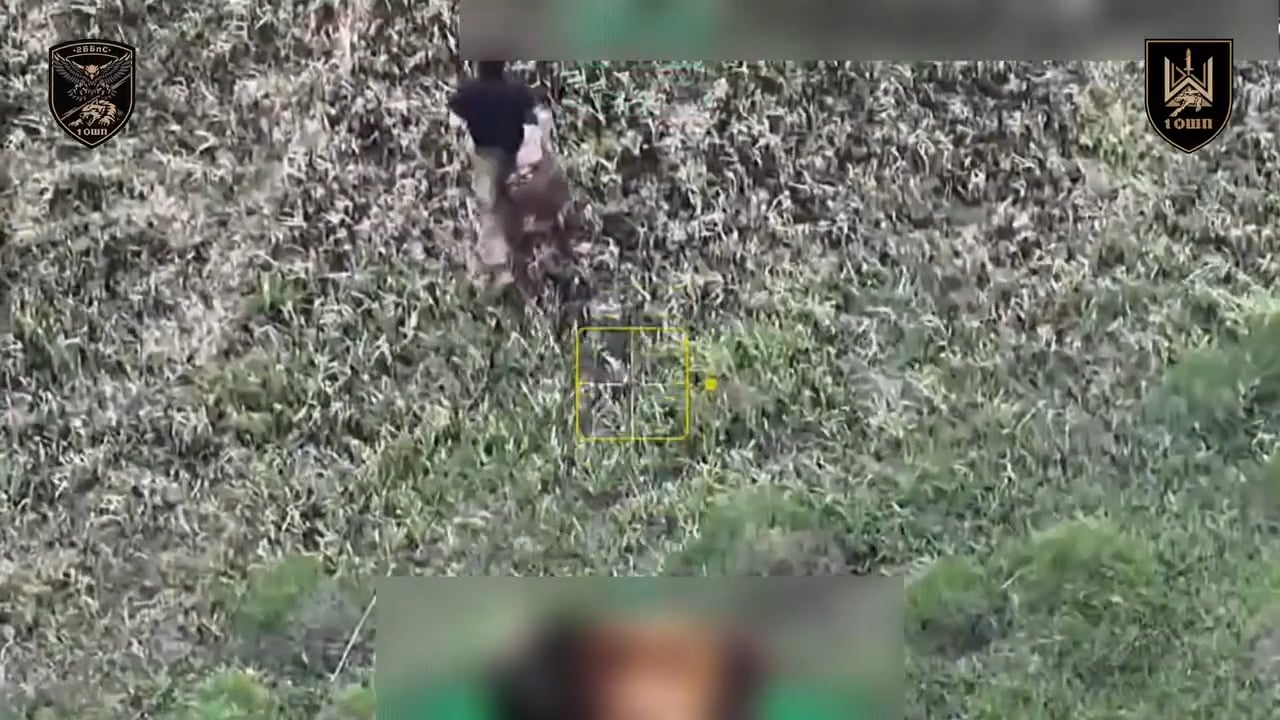 FPV-Kamikaze-Drohne trifft russischen Soldaten, der sich im Schilfsumpf in der Nähe von Huliaipole versteckt. Das 1. Angriffsregiment der Ukraine, veröffentlicht am 21. April 2026.