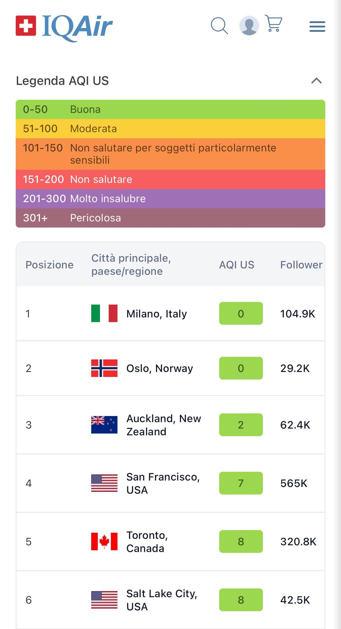 Heute ist Mailand die Stadt mit der saubersten Luft der Welt (laut IQAir)