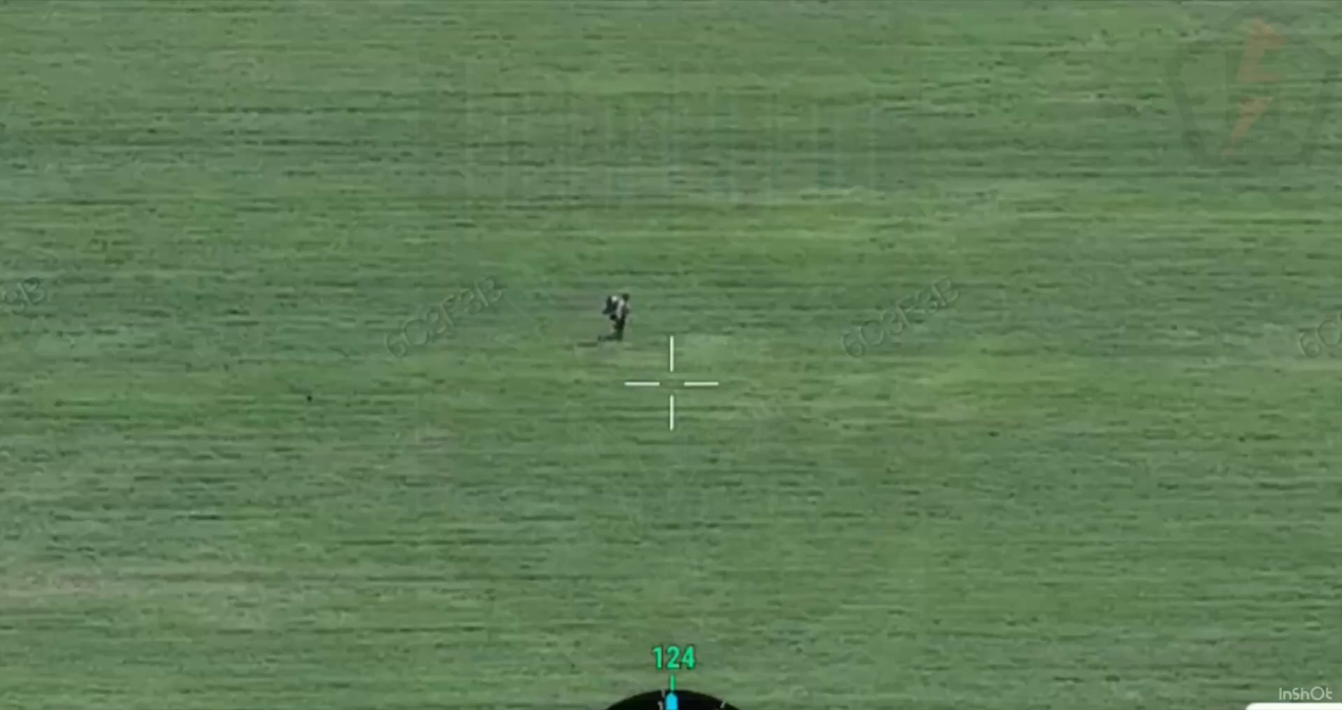 Zwei FPV-Kamikaze-Drohnen trafen einen russischen Soldaten, der in der Nähe von Huliaipole über offenes Feld ging. Die 5. Angriffsbrigade der Ukraine, veröffentlicht am 21. April 2026.