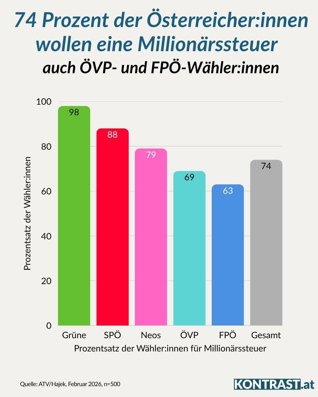 Nicht nur die Linksgrünversiften sind für eine faire Besteuerung von Vermögen – sondern auch die Mehrheit der FPÖ-, ÖVP- und Neos-Wähler. Trotzdem blockieren diese drei Parteien eine Millionärssteuer.