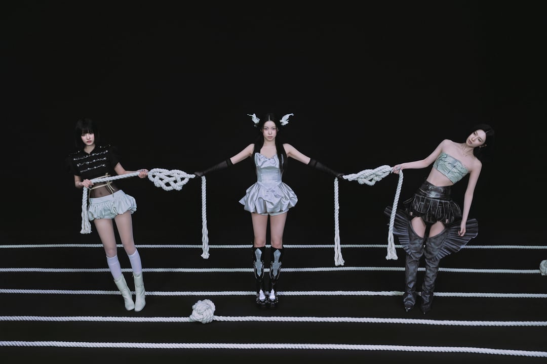 there seems to be a wing/feathers visual theme as well as the continuation of a mini-nmixx theme that goes back at least to Soñar with their [matching mini pink look.](https://i.imgur.com/4aaMaFf.png)