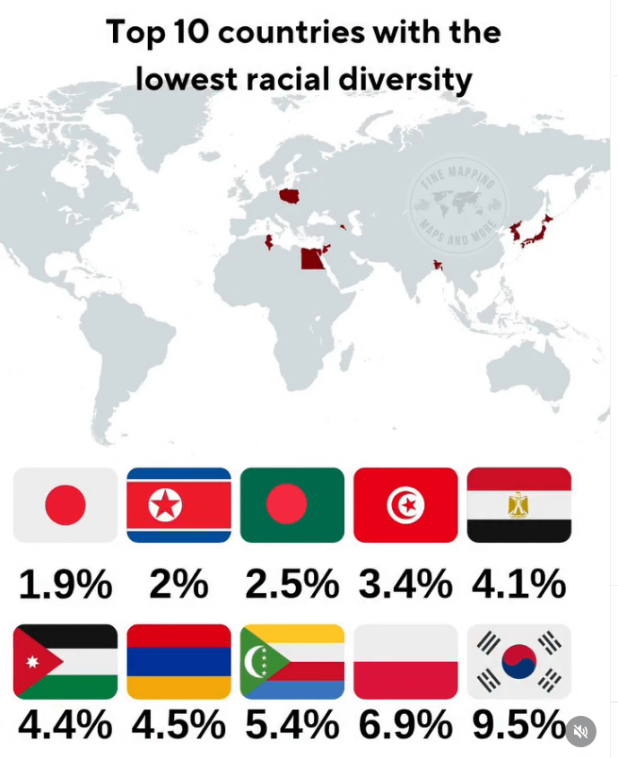 What do you mean by racial diversity? Where is the data from, did you really manage to get data on NKorea?