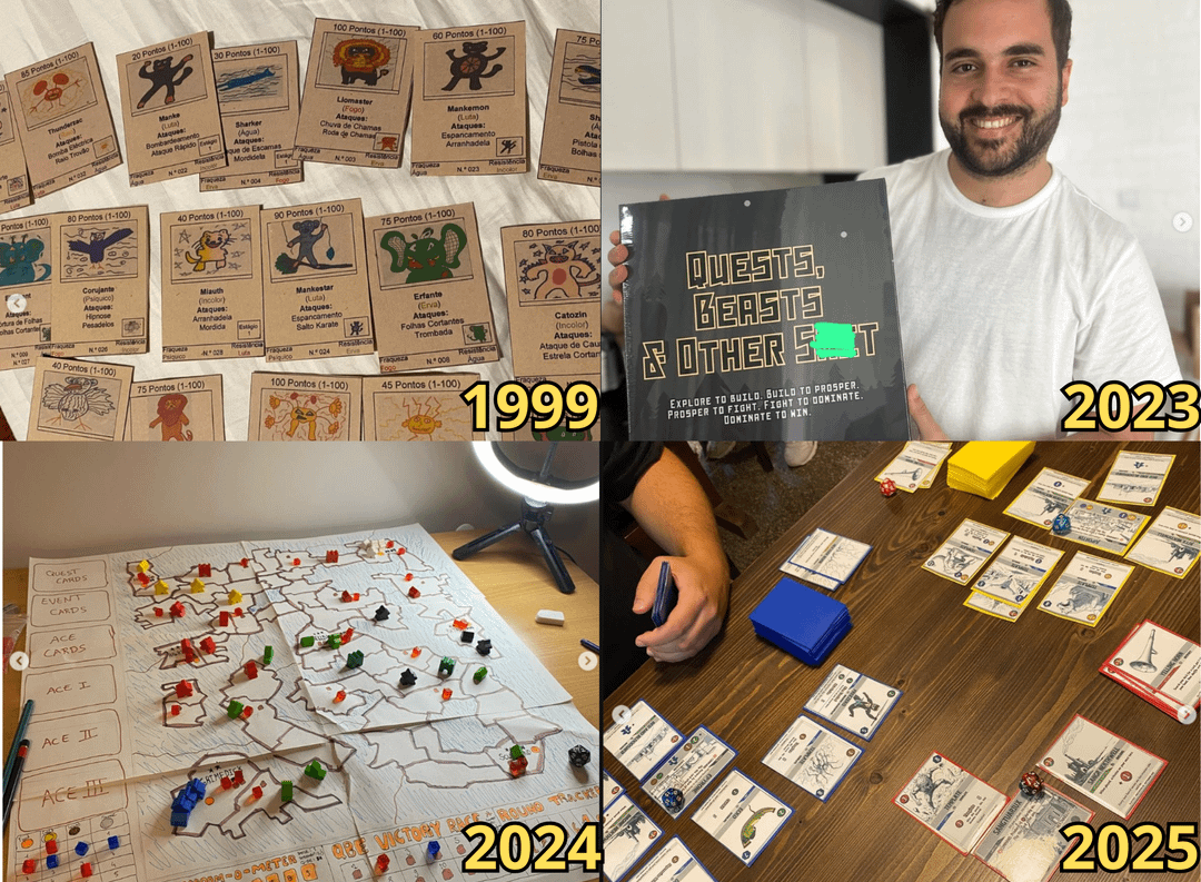 Im Jahr 1999 war ich ein großer Pokémon-Fanatiker, von den Spielen über die Serien und Filme bis hin zum Sammelkartenspiel. Aus diesem Grund und weil ich die meiste Zeit nach der Schule im hinteren Teil des Ladens meiner Eltern verbringen musste, habe ich mein eigenes Sammelkartenspiel entwickelt (lange bevor ich Zugang zum Internet hatte). Meine Mutter hat diese Originalkarten aus rechteckig geschnittenem Geschenkpapier 27 Jahre lang aufbewahrt, also habe ich sie immer noch.