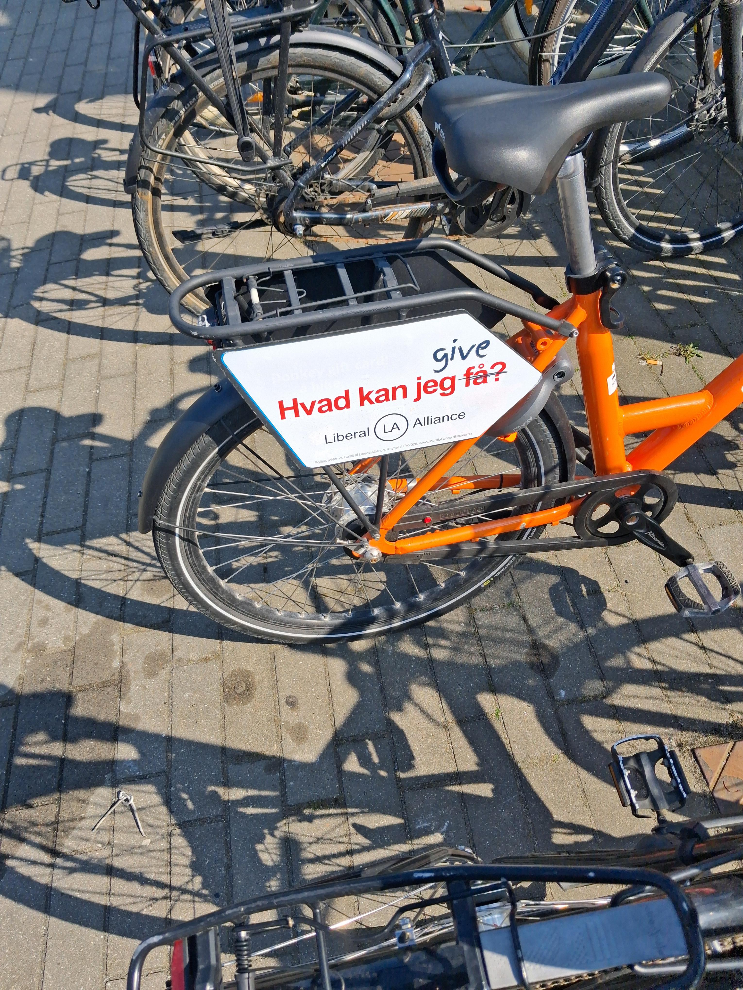 5. Lille sjov fact. Jeg har sat den sticker på der – havde et odd job for Donkey Republic som vikar. I 3 dage op til valget, skulle jeg kører rundt på en el cykel og sætte stickers på deres cykler.