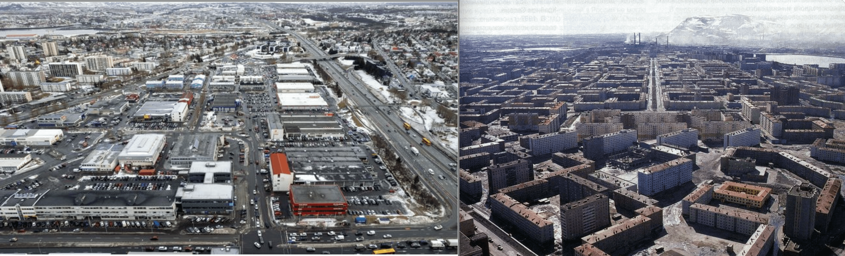 Alltaf betri en þetta skrípi sem er verið að bera saman við hér, þetta Norilsk lítur út eins og depurð í borgarskipulagslíki. Er fólk þar steinsnar frá yndisstöðum eins og Elliðaárdalnum eða Laugardalnum? Sýnist ekki