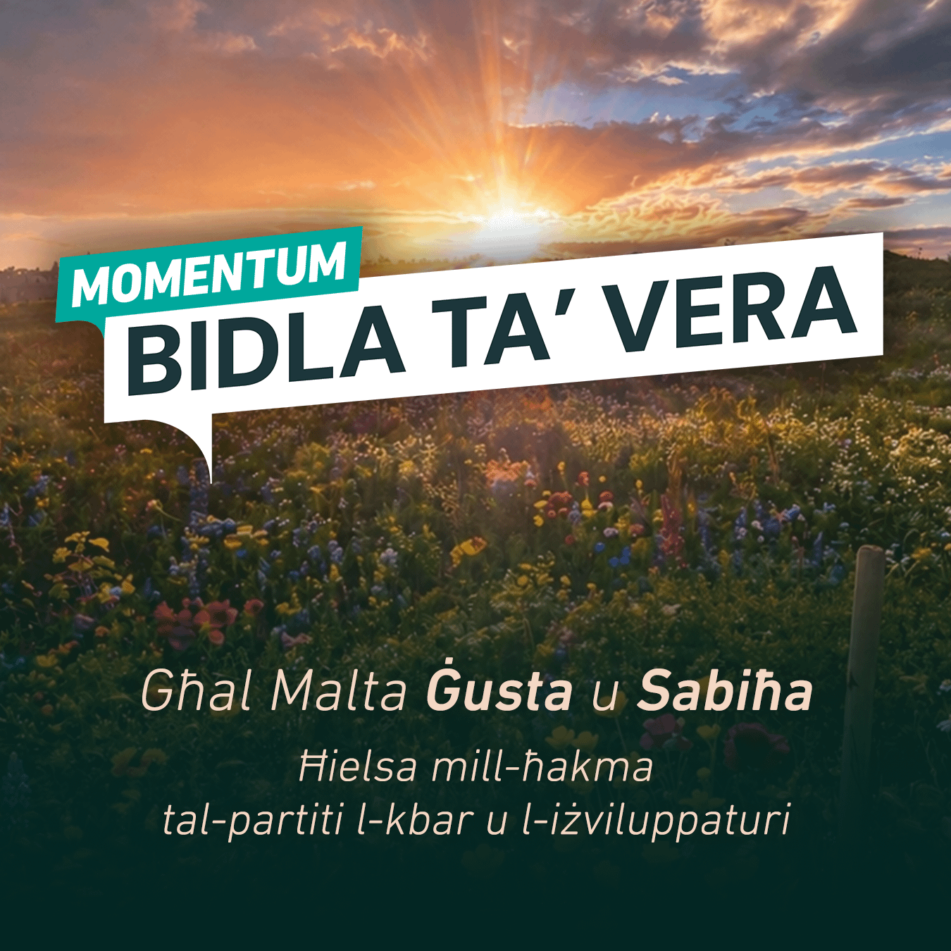 Momentum stellt bei dieser Wahl Kandidaten aus allen Bezirken Maltas auf, die auf einer Plattform für demokratische Reformen, ökologische Nachhaltigkeit und wirtschaftliche Gerechtigkeit stehen.
