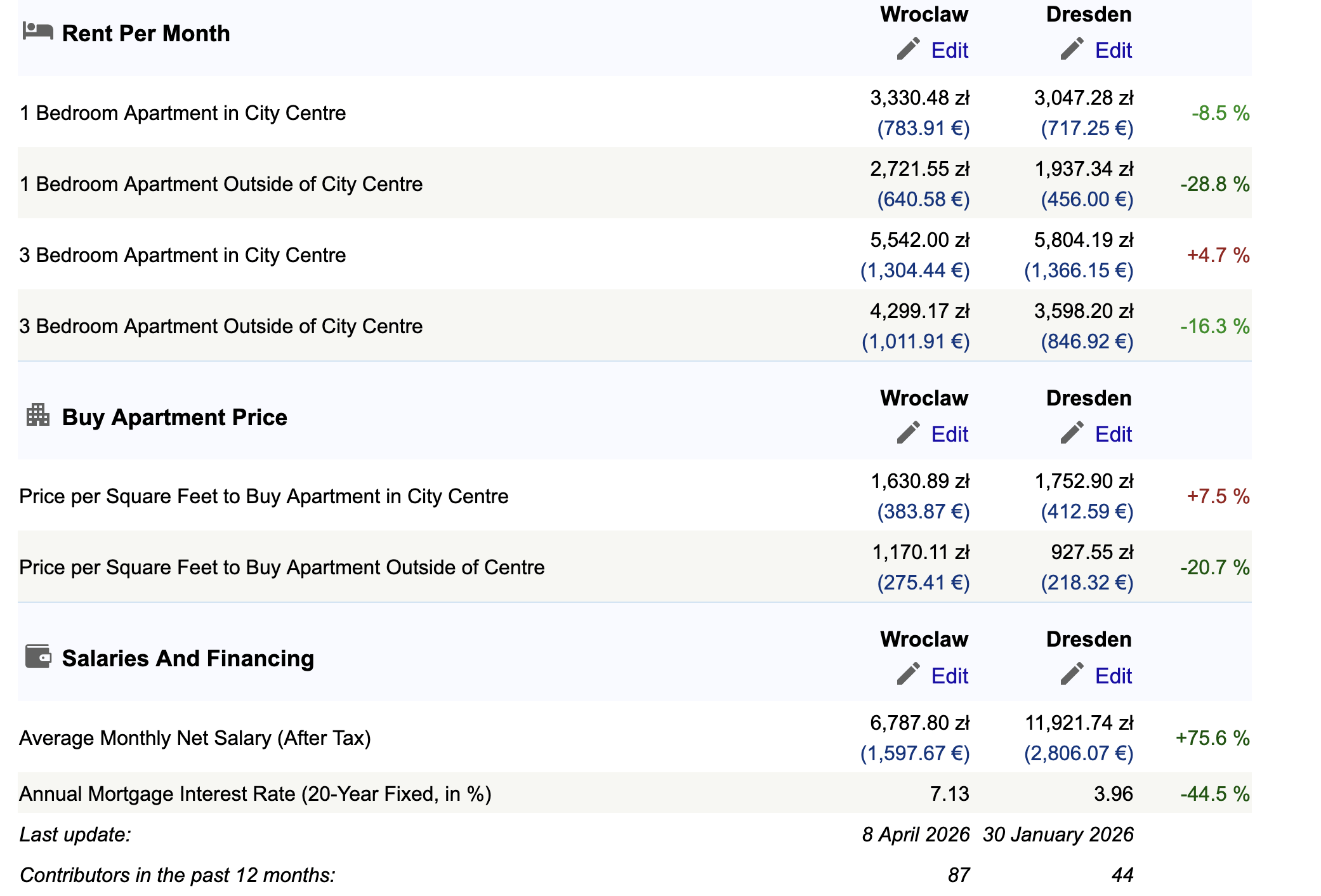 A tak poważnie, to koszty mieszkań w Dreźnie mogłyby być jeszcze niższe, gdyby nie to, że miasto sprzedało cały zasób komunalny prywatnym koncernom ratując się przed bankructwem po tym, jak zadłużyło się po uszy w celu odbudowania zniszczonego w czasie wojny centrum. Porównywałem niedawno na numbeo Wrocław z Lipskiem i w tym zestawieniu Wrocław wypada jeszcze drożej.
