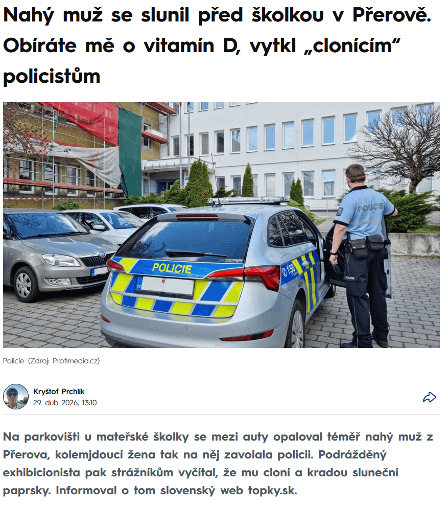 pospec4444 on 29.04.2026 1:01 p.m. https://cnn.iprima.cz/skoro-nahy-muz-se-slunil-pred-skolkou-v-prerove-obirate-me-o-vitamin-d-rekl-policistum-510754
