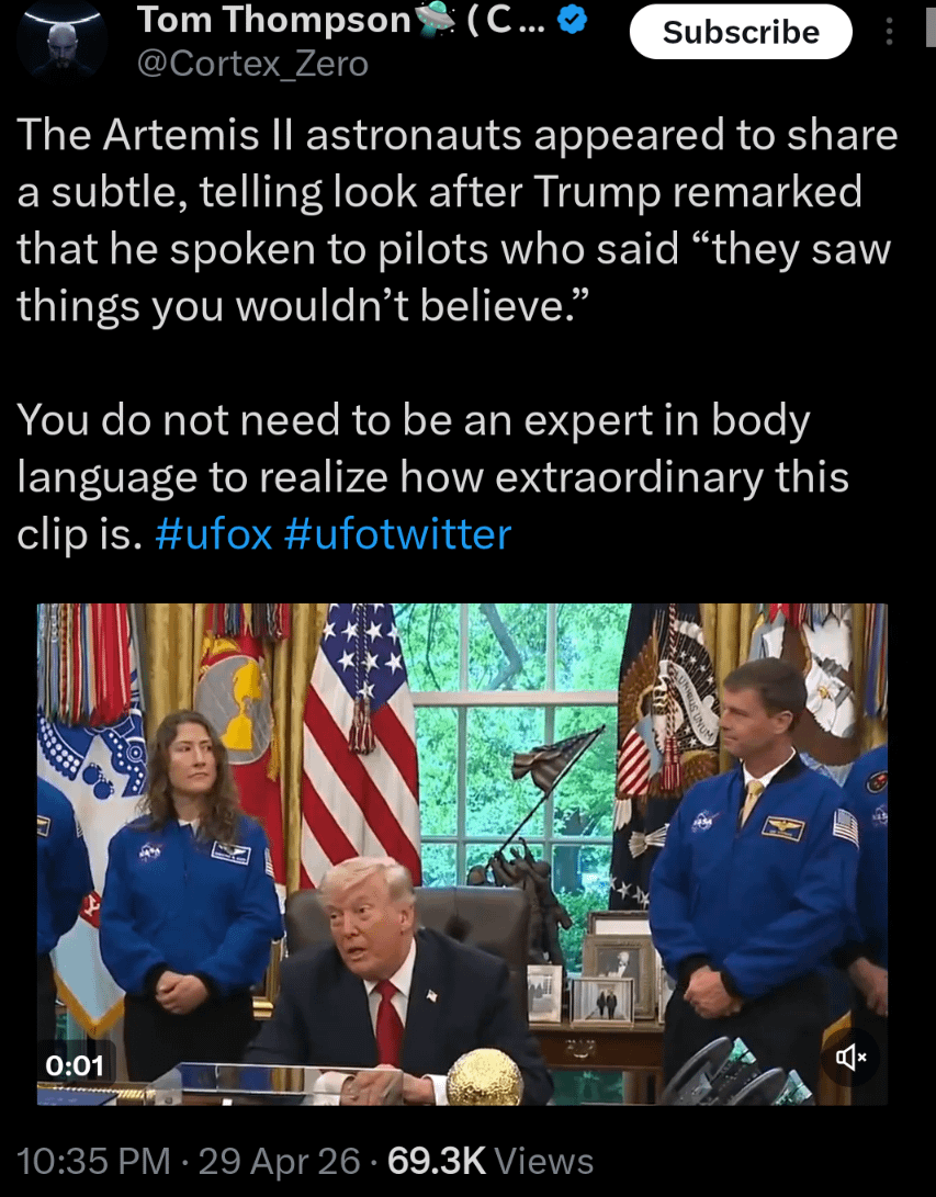 Yeah, bullshit. Nice try distracting us from the Epstein files, we don’t care about the UFOs, aliens whatever.
