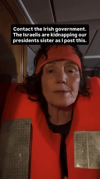 Die Schwester des irischen Präsidenten wurde von Israel vor der Küste Kretas entführt, als sie Teil der jüngsten Freiheitsflotte war, die die Belagerung von Gaza durchbrechen sollte.