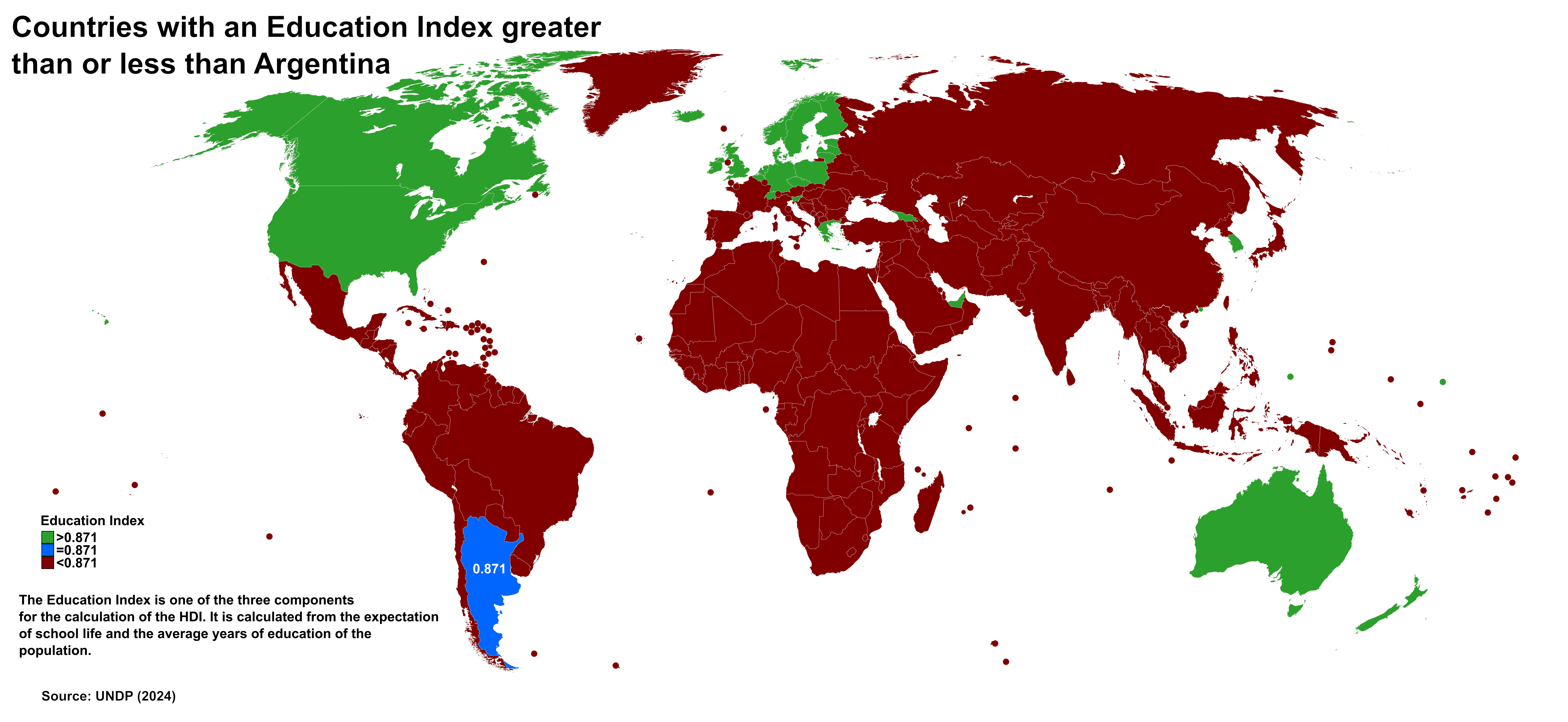 I think there is a big problem with this index. It only considers the years of education and not the quality of education. For example, East Asian countries have far superior PISA test scores compared to Argentina, but they have a lower education index.