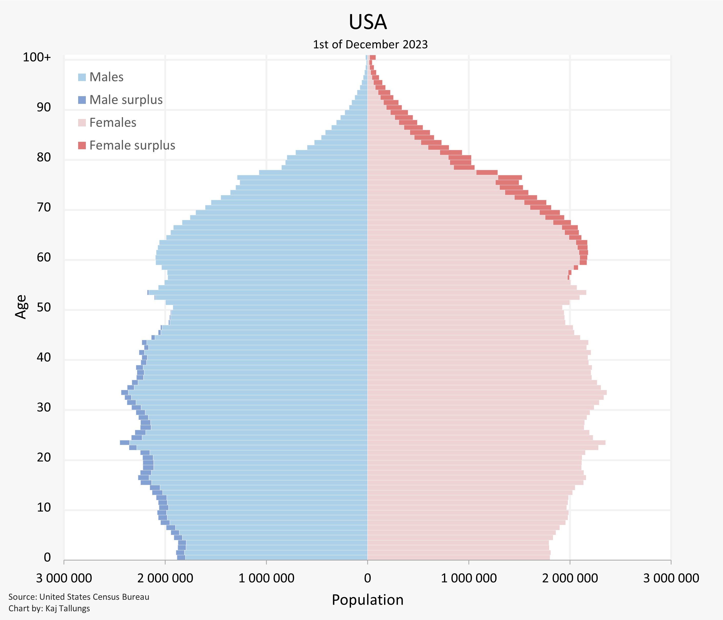 It’s so funny that redditors see the surplus female bars at the older ages and go „that’s because of the FALLEN in BATTLE and WAR“ and forget about heart disease.