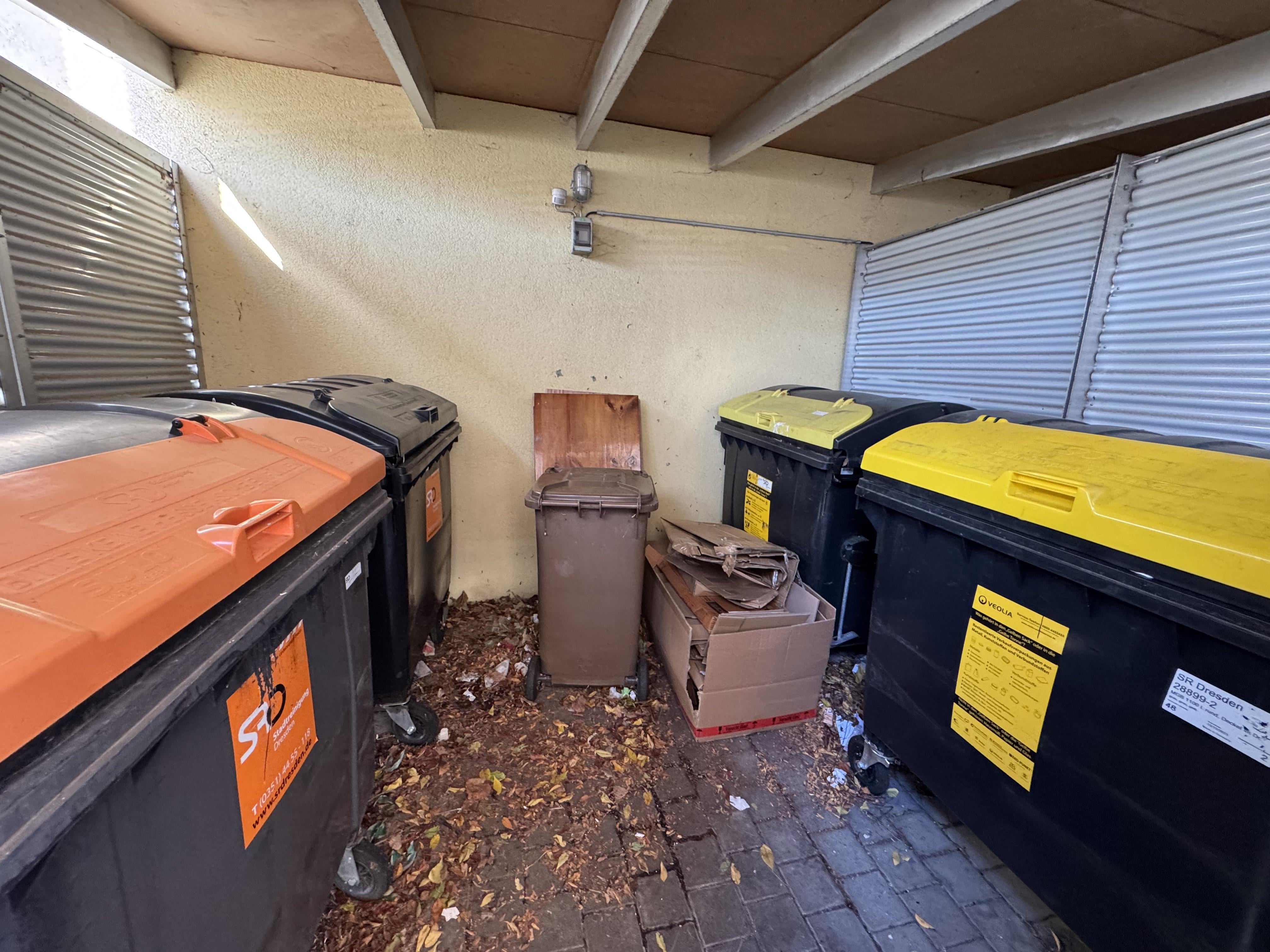 Ich hatte einen Haufen Papierkartons, die ich aus der neuen Küche bekommen habe. Dann faltete ich sie so weit wie möglich zusammen, packte sie in einen größeren Karton und brachte sie an einem sonnigen Tag zum Müllschuppen unserer Wohnung. Der Papierkorb war nicht da und der Karton war schwer. Also stellte ich den Karton an einer Stelle im Schuppen ab, an der er nicht blockiert werden konnte. Siehe das Bild. Der Karton steht vor der zweiten gelben Tonne. Da beide gelben Tonnen leer waren und es Samstag war, ging ich davon aus, dass es niemanden blockieren würde. Ich schickte das Foto an den Hausmeister und bat ihn, mir mitzuteilen, ob dies ein Problem sei, und ich würde sie in diesem Fall umziehen. Am Sonntagmorgen gehe ich raus und sehe, wie jemand sie einfach herausgeschleppt hat und der Regen die Papiere durchnässt hat. Und die Art und Weise, wie die Kiste außerhalb des Schuppens aufbewahrt wurde, versperrte einfach den Weg. Die gelben Tonnen waren noch leer. Hausmeister sagte, sie hätten es nicht getan und hätten mich vorher angerufen, bevor sie so etwas getan hätten.