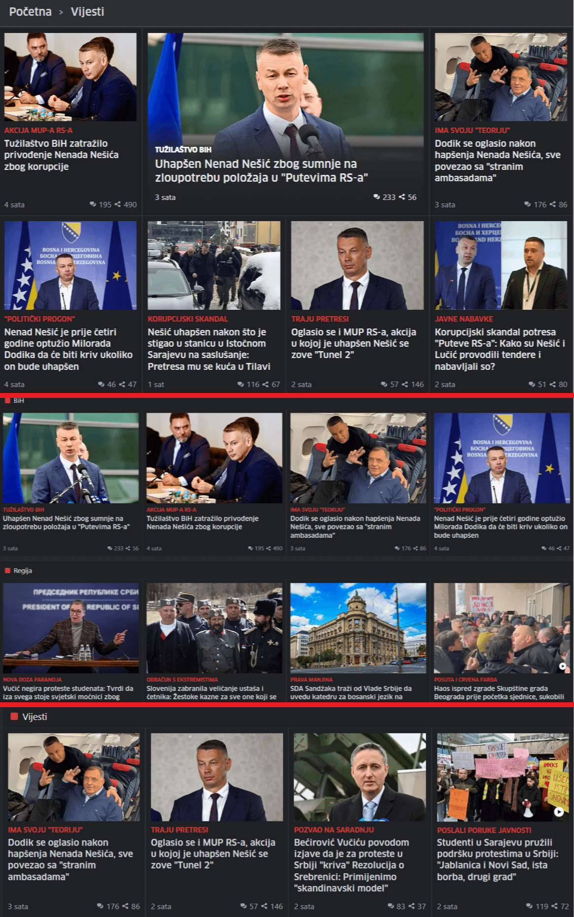 Doduše, ovo je bilo jučer i bilo je još članaka o Srbima, RS-u i Srbiji iz drugih kategorija, ali poenta je tu.
