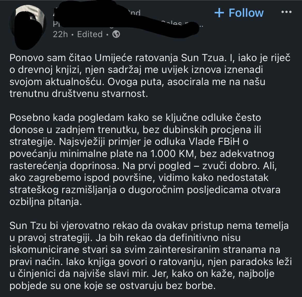 Nide veze, al‘ hajd. Mislim da se ovdje ne moze upotrijebiti iskustva niti iz jedne pomenute knjige. Na BiH se jedino moze upotrijebiti iskustva iz Cosa Nostra. Mislim da je vlada ovdje dobro odigrala, da se rijesi problem placa u kovertama. Ljudi na minimalcu, a registruju novo auto.