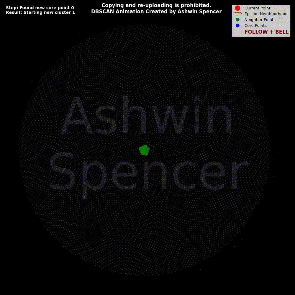 [OC] DBSCAN -Animation der 2D -Verteilung des Goldenen Verhältnisses. Datenquelle: Mathematische Gleichung. Werkzeuge: Python. DBSCAN erfasst natürliche Dichtemuster in der Punktverteilung ohne vordefinierte Clusterzahlen. Diese Visualisierung zeigt das goldene Verhältnis in 2D und zeigt seine strukturierten Spiralmuster