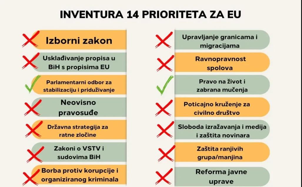 Auf dem Bild sehen wir diese berühmten 14 Prioritäten, um überhaupt Verhandlungen zu beginnen? Wie wir sehen, haben wir nur 2 Prioritäten aus 14 Jahren in fast einem Jahrzehnt getroffen. Wir haben den Status des Kandidaten im Jahr 2022 erhalten, obwohl wir auf diesem Weg nicht fast alles erfüllt haben und die Anfrage im Jahr 2016 eingereicht haben.