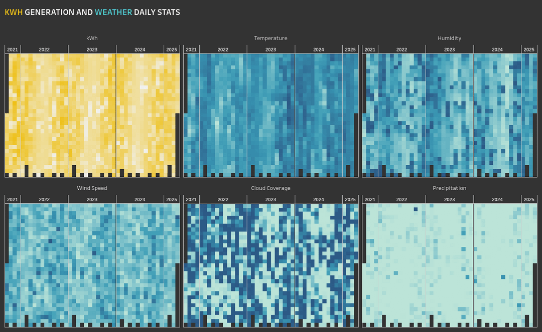 Share Facebook Twitter LinkedIn Pinterest Bluesky Threads Daten, die aus Openweather und Apsystems / nämlich: Tableau von API gesammelt wurden Von unhinged_peasant