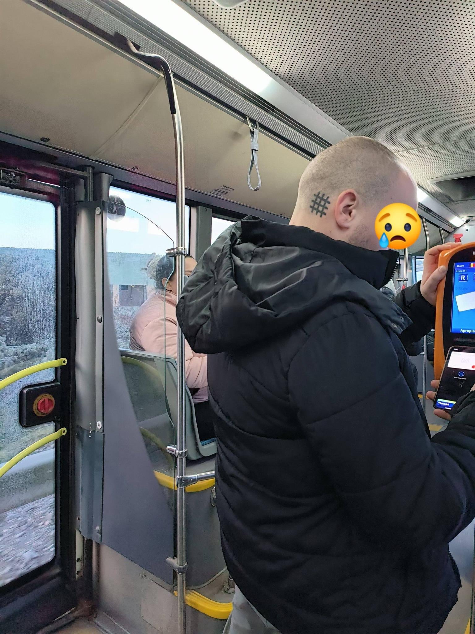 Unde a ajuns si tehnologia asta…omul are cod QR pe ceafa..in caz ca vin controlorii doar ii scaneaza codul de pe ceafa./s