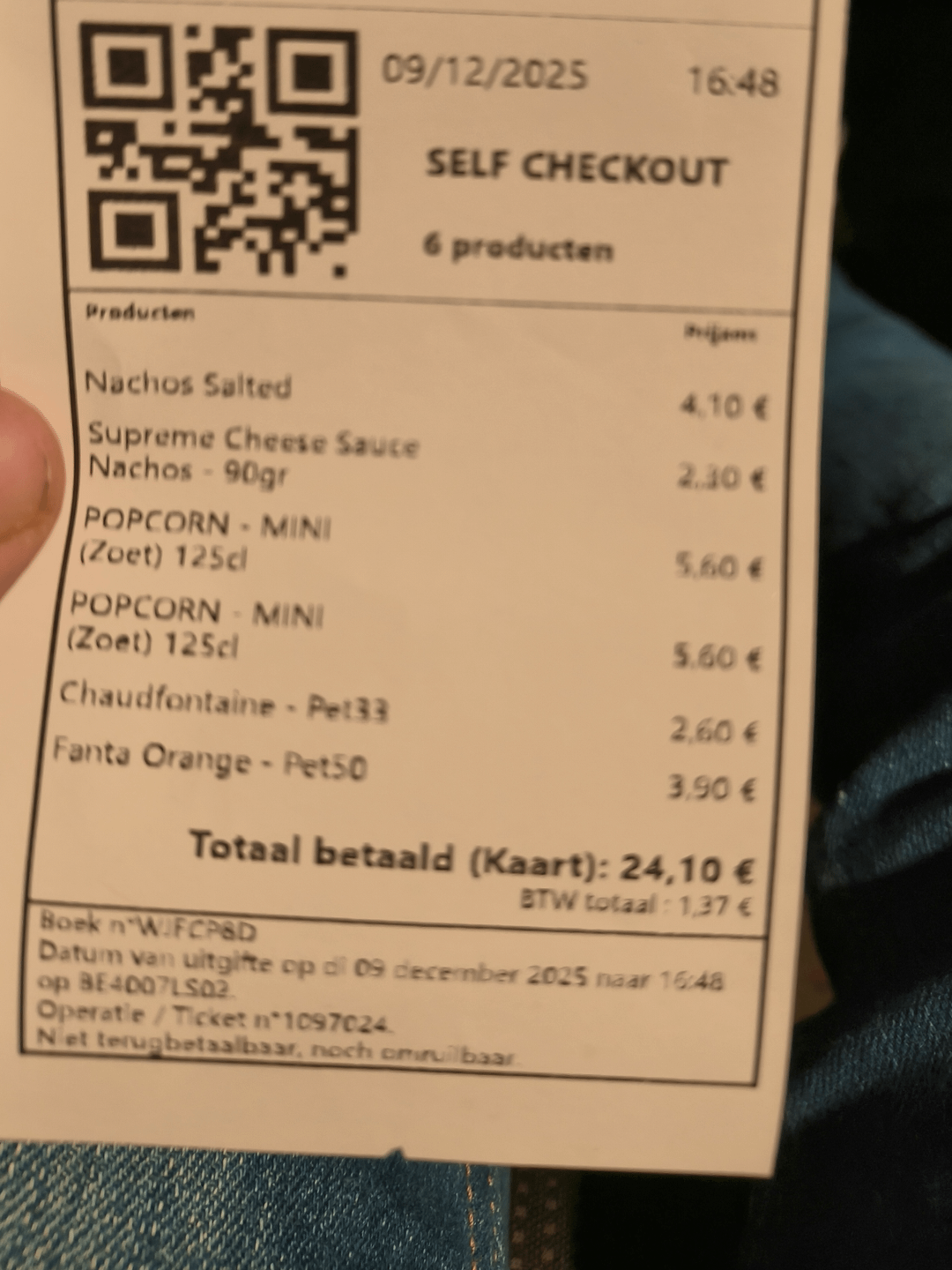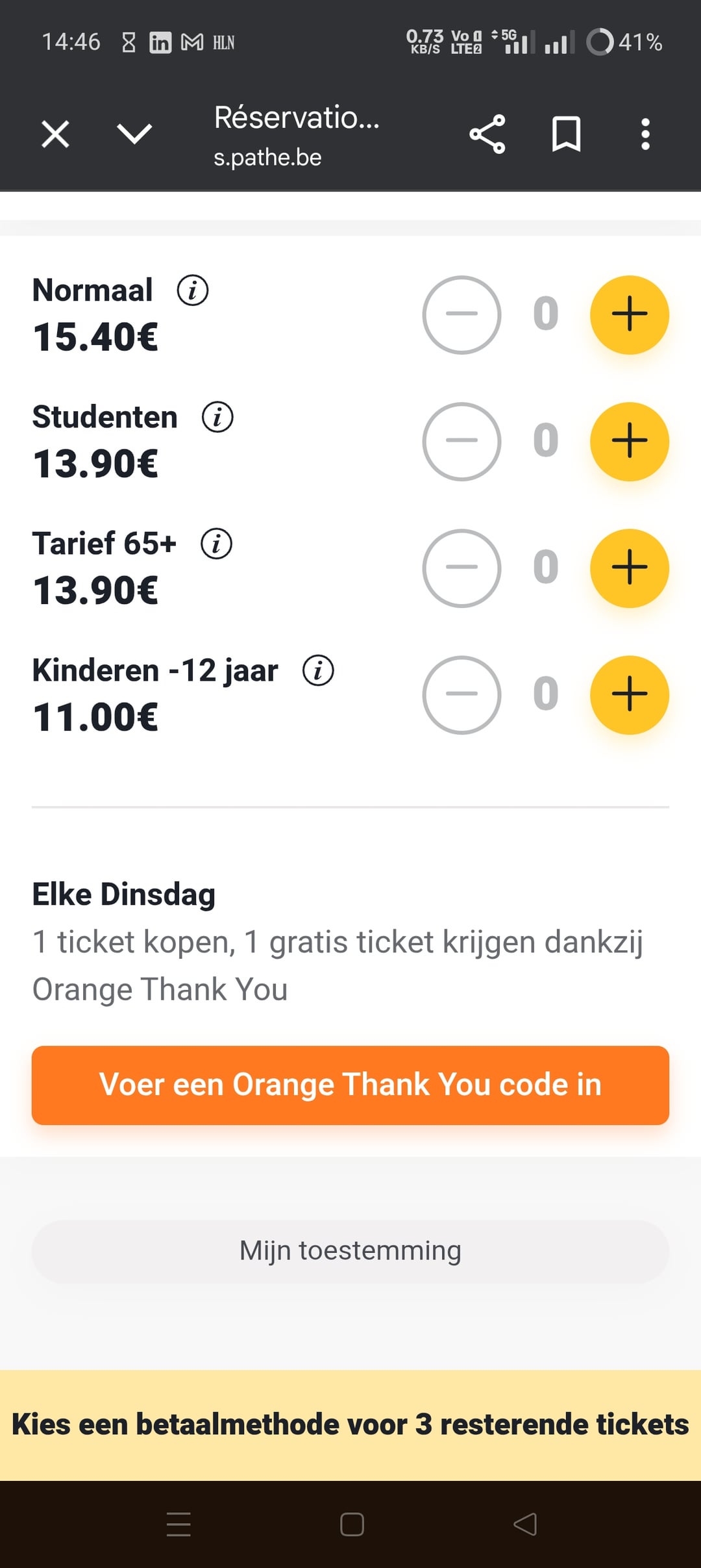 Ik kan met Proximus „gratis“ filmtickets krijgen voor de Kinepolis. Als je dan op de website afrekent, blijkt dat je tóch nog moet betalen voor je stoel: een 6-tal euro voor een normale stoel en nog meer voor cosy seats. Een normaal tarief voor een film is rond de 22 euro, denk ik.